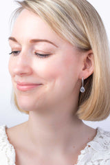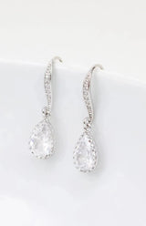 Die versilberten Ohrhänger bezaubern durch pure Eleganz. Ihre Tropfenform verleiht ihnen ein zeitloses Aussehen und damit passen sie wunderbar zu deinem Brautkleid. Die zarten Ohrhaken mit funkelnden kleinen Zirkoniasteinen machen die Ohrringe zu einem absoluten Blickfang!