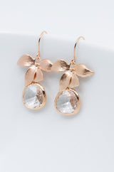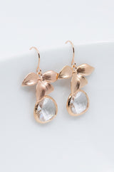 Wunderschöne rosegoldene Ohrhänger, mit zarten Blüten und klaren Kristallen. Diese Ohrringe sind ein absoluter Blickfang!