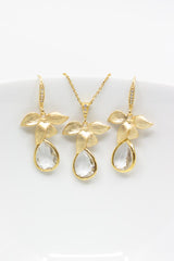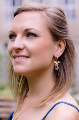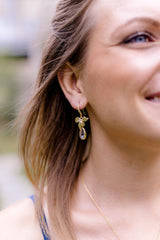 Wunderschöne vergoldete Ohrhänger, mit zarten Blüten und tropfenförmigen Kristallen. Diese Ohrringe sind ein absoluter Blickfang!