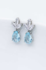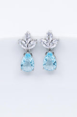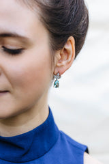 Diese kleinen silbernen Ohrringe mit funkelnden aquamarinfarbenen Kristallen bestechen durch ihre zeitlose Eleganz. Ihre Form verleiht ihnen ein einzigartiges Aussehen.