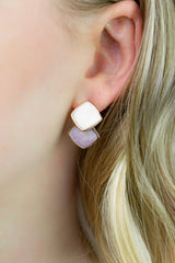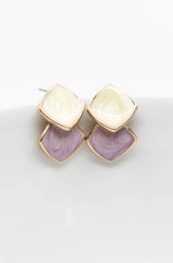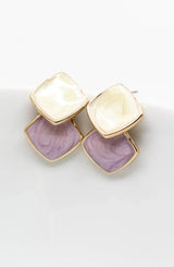 Diese vergoldeten Ohrstecker bestehen aus zwei verschiedenfarbigen Elementen. Der obere Teil ist in einem schimmernden Cremeton gearbeitet, während darunter ein zart schimmernder Lilaton liegt. Beide Elemente sind in ihrer Farbgebung einzigartig, aber dennoch sehr harmonisch.Der leichte Schimmer und die vergoldete Umrahmung verleihen den Ohrringen ein elegantes Aussehen.