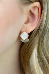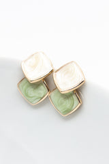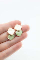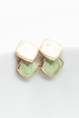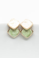 Diese vergoldeten Ohrstecker bestehen aus zwei verschiedenfarbigen Elementen. Der obere Teil ist in einem schimmernden Cremeton gearbeitet, während darunter ein zart schimmernder Grünton liegt. Beide Elemente sind in ihrer Farbgebung einzigartig, aber dennoch sehr harmonisch.Der leichte Schimmer und die vergoldete Umrahmung verleihen den Ohrringen ein elegantes Aussehen.