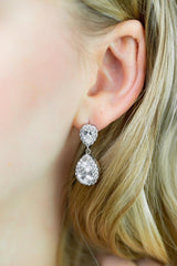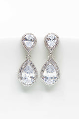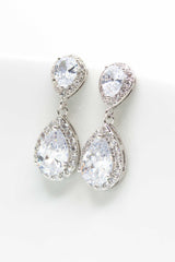 Die versilberten Ohrringe, mit großen funkelnden Zirkoniasteinen, bezaubern durch pure Eleganz. Ihre Tropfenform verleiht ihnen ein zeitloses Aussehen.