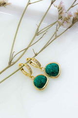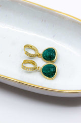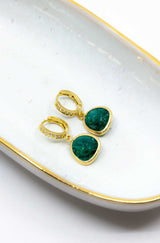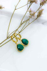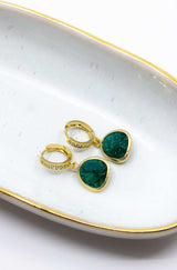 Diese vergoldeten Creolen mit dunkelgrünen Steinen sind ein unverzichtbarer Bestandteil jeder Schmuckkollektion! Sie sind ein großartiges Geschenk für Brautjungfern, beste Freundinnen - oder natürlich für Dich selbst.