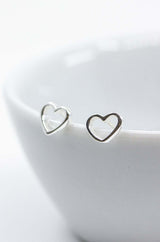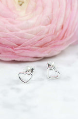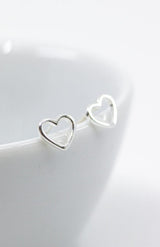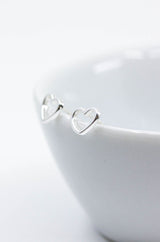 Kleine silberne Ohrstecker in Herzform aus 925 Sterlingsilber.