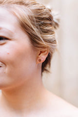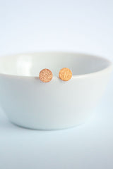 Kleine rosevergoldete Ohrstecker aus 925 Sterlingsilber, mit matt gebürsteter Oberfläche.