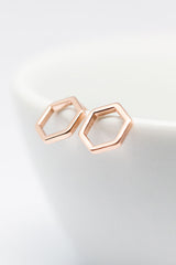 Diese glänzend rosegoldenen Ohrstecker in Sechseckform eignen sich perfekt für jeden Tag.