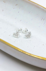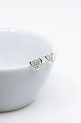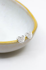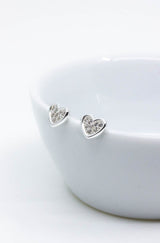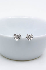 Diese zarten silbernen Ohrstecker in Herzform sind besetzt mit vielen kleinen Kristallen.