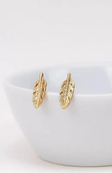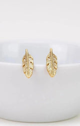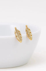 Kleine, vergoldete Ohrstecker in Form von zarten Federn.
