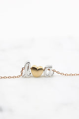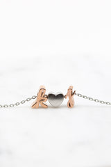 Feine Kette mit zwei individuellen Buchstaben in Schreibschrift und einem matten Herz. Wähle Deine persönliche Kombination!