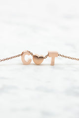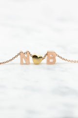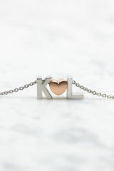 Feine Kette mit zwei individuellen Druckbuchstaben und einem matten Herz. Wähle Deine persönliche Kombination!