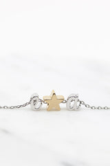 Feine Kette mit zwei individuellen Buchstaben in Schreibschrift und einem matten Stern. Wähle Deine persönliche Kombination!