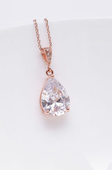 Der funkelnde Kristallanhänger ist an einer feinen rosegoldenen Kette befestigt und bezaubert durch sein elegantes Design.
