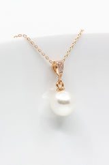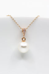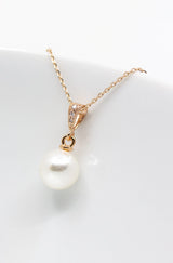 Der schlichte runde Perlenanhänger ist an einer feinen rosegoldenen Kette befestigt und bezaubert durch sein elegantes Aussehen.