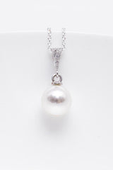 Der schlichte runde Perlenanhänger ist an einer feinen Silberkette befestigt und bezaubert durch sein elegantes Aussehen.