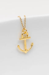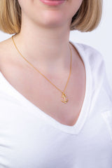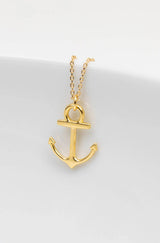 Zarte goldene Kette mit einem Anhänger in Form eines Ankers.