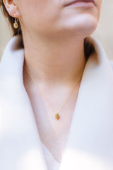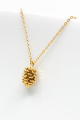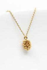 Zarte vergoldete Halskette, mit einem kleinen Tannenzapfen als Anhänger.
