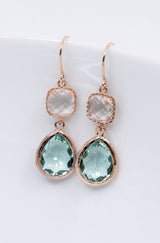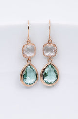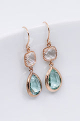 Lange rosevergoldete Ohrringe mit wunderschön funkelnden erinitegrünen Kristallen.