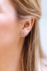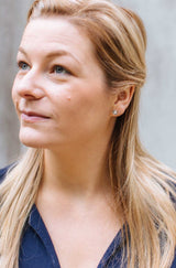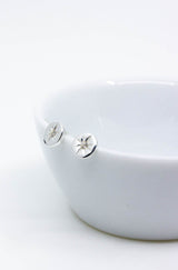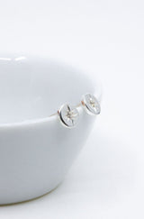 Ohrstecker in Plättchenform aus Silber, mit einem kleinen Kristall in der Mitte.