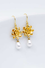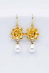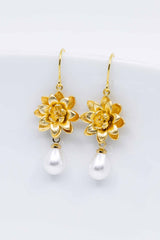 Die eleganten, vergoldeten Blumenohrringe, verziert mit schimmernden Perlen, verleihen jedem Outfit Raffinesse. Diese Ohrringe sind das perfekte Accessoire für besondere Anlässe und bieten ein zeitloses Design, das zugleich zart und auffällig ist. Mit ihren detaillierten floralen Elementen sind diese Ohrringe ein wahrer Hingucker, der Deine natürliche Schönheit unterstreicht.